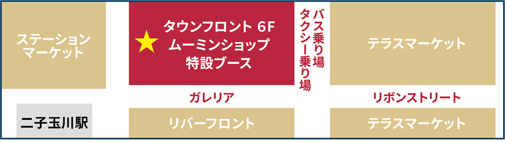 対象店舗の4,000円以上(税込・合算不可)のお買い上げレシートをタウンフロント 6F ムーミンショップ 特設ブースにお持ちいただくと、二子玉川ライズ S.C.オリジナルのムーミングッズを1つプレゼントいたします。