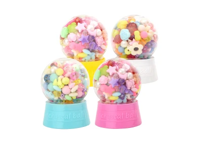 さまざまな色や形のビーズから好きなものを自由に選んで、スノードーム型のカワイイケースにぎっしり、詰め放題にできます。